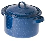 Inspired by traditional Graniteware, our Enamelware blends old-fashioned charm and functionality into one sturdy package. Built from heavy-gauge steel with a classic speckled enamel finish, every piece has been kiln-hardened twice at 1400° F to stand up to scratches and chipping. The three-ply construction maximizes heat distribution for even cooking and the bright stainless steel rim adds the perfect finishing touch to camp, cabin, RV or patio. Includes Pot and Lid Material Enambled Steel Weight 3 lbs 6 ounces Kiln-hardened twice at 1400 degrees to stand up to scratches and chipping.