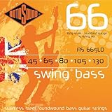 Gauges 45-65-80-105-130. Stainless steel roundwounds. Long scale. The original roundwound bass string, utilizing specialized materials and a unique manufacturing method giving this string unsurpassed brightness, sustain, and string life. Jaco's favourite by far! Rotosound is famous for their high quality electric bass strings. 45-130
