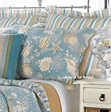 Perfect accent to our Natural Shells bedding collection. The Natural Shells standard sham gives a relaxing, beach feel to your decor. 100% Cotton quilted sham displays delightful seashells and sealife on an aqua background, and is finished off with a romantic scalloped edge. Dimensions: 21 x 27" The Natural Shells standard sham gives a relaxing, beach feel to your decor. 100% Cotton quilted sham displays delightful seashells and sealife on an aqua background, and is finished off with a romantic scalloped edge. Dimensions: 21 x 27" Dimensions: 21 x 27" Perfect accent to our Natural Shells bedding collection