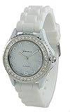 BestPrice Geneva 1 1/2" Square Large Crystal Face... White Silicone Strap