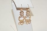 This earring is unique design with circle and three hearts hanging on it in white yellow and rose color .