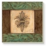 BestSeller CounterArt Antique Fleur De Lis Design Square Absorbent Coasters in Wooden Holder, Set of 4