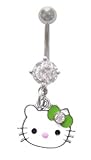 Buy Now Hello Kitty Head Face w/ Green Bow w/ Cz Gem dangle Belly navel Ring piercing bar body jewelry 14g