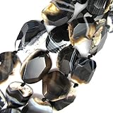 Offer 30-37mm faceted black stripe agate flat nugget beads 8"