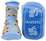 Dump Trucks Skidders Baby Gripper Socks, baby boys quarter crew style socks with rubber gripper bottoms. SIZING HELP - Skidders * 6 months - fits up to a 4.25" foot (average shoe size 2) * size 12 months - fits up to a 4.75" foot (average shoe size 4) * size 18 months -fits up to a 5.25" foot (average shoe size 6) * size 24 months- fits up to a 6.00" foot (average shoe size 8). For all our sizing charts, please visit our Amazon storefront and go to the Seller Help tab, http://www.amazon.com/gp/help/seller/custom.html?ie=UTF8&marketplaceID=ATVPDKIKX0DER&isCBA=&productInformation=0&asin=&seller=AE3U19PB9WFHT&isPopup=&page=5 Skidders Specific SIZING HELP, in the "Product Description" below. Provides Traction Feather Light Weight Breathable Material Machine washable