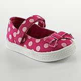 TPR outsole Jumping Beans® Pink Dot Mary Jane Sneaker Shoes - Toddler Size 2 The adjustable straps on these darling shoes allow quick on and off, and a customizable fit. Bow detail and polka-dot pattern lend cute touches. Round Toe and Velcro® straps offer easy on and off. Padded Footbed