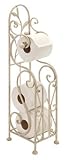 Shabby White Metal Toilet Paper Holder With Magazine Rack. Toilet paper holder made from solid cold cast metal in shabby white finish. Toilet paper stand has storage pace for extra tissue rolls, newspaper or magazines. Height 24", Width 8" Manufactured to the Highest Quality Available. Design is stylish and innovative. Satisfaction Ensured. Great Gift Idea.
