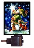 This is a very fun Christmas night light! The image is by talented artist Janet Stever. This light makes a very unique gift and perfect as a stocking stuffer, office gift, or grab bag gift. This is a very popular light and will look great in any room in your house! This photographic image is printed in the USA using high quality inks. **PLEASE NOTE** Unlike cheaper night lights, the light bulb on these decorative lights are fully enclosed! No more seeing an exposed bulb when looking at the night light from the side. You'll love the richness of the light as it provides you with both safety and improved visual attractiveness. This is an extremely well built and solid unit! Unlike cheaper models, this bulb is FULLY ENCLOSED for safety and visual attractiveness. Plug can be rotated to accommodate outlets in any direction. Glass front for vivid visual display. Additional replacement bulb is included with each light (7 watt "night light" bulb). Unit is fully U/L approved.
