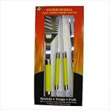 09-1505-Y (Set) Features: -Three piece rubber coating handle BBQ tool set includes tongs, fork and spatula. -Yellow color. -Overall dimensions: 1.75'' H x 9.5'' W x 18.75'' D.